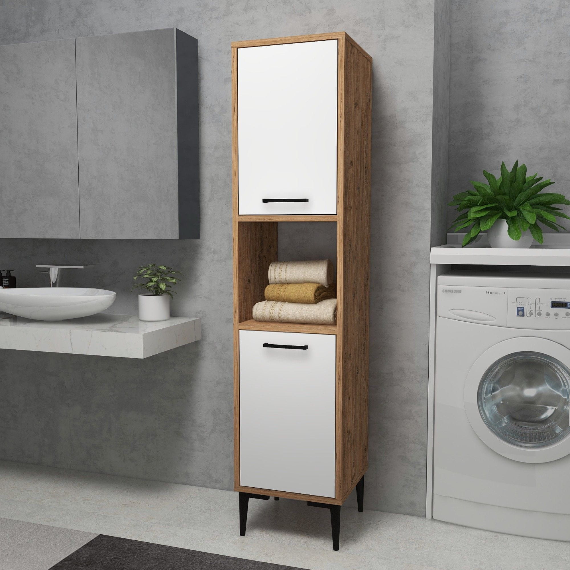 100 % IVERNE PLOŠČE PREVLAČENE Z MELAMINOM Debelina: 18 mm Širina: 35 cm Višina: 153,6 cm Globina: 35 cm Višina srednje police: 31,4 cm Višina police: 24 cm Višina noge: 15 cm Številne police Lahko se pritrdi na steno Število paketov: 1 41 × 147 × 15,5 cm / 28 kg (1 kos)