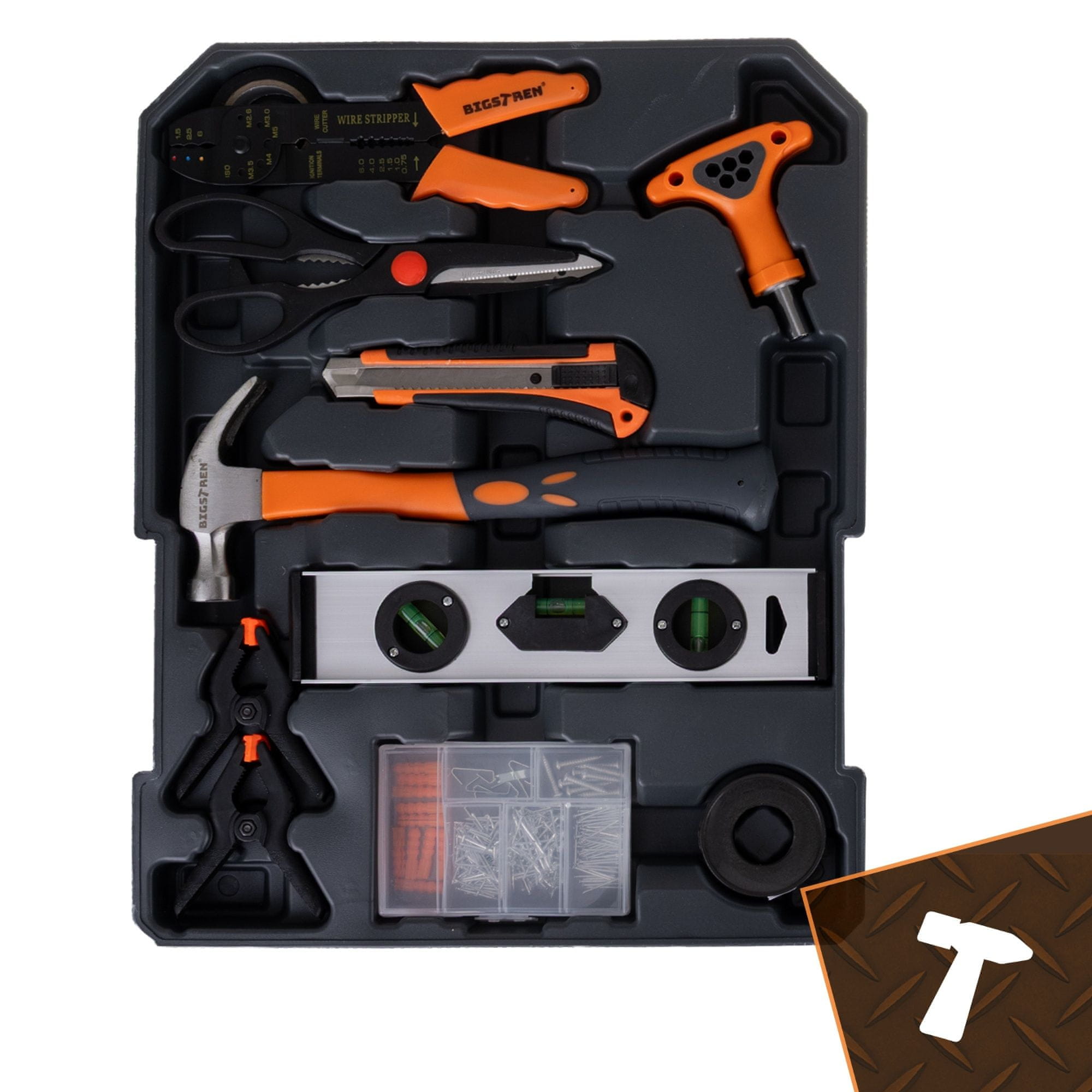 1000-delni komplet Bigstren je eden najobsežnejših kompletov orodja, ki so na voljo na trgu. Aluminijast kovček vsebuje štiri odstranljive organizatorje, napolnjene s ključi, nastavki, nastavki, izvijači, kleščami in montažnim priborom . Komplet je zasnovan tako, da zagotavlja popolno mobilnost, organizacijo in možnost izvedbe praktično vsakega popravila. Kovček ima kolesa, teleskopski ročaj in kovinske ključavnice, zaradi česar je idealen za domača, garažna, delavniška in mobilna dela.