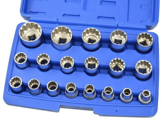 Komplet 19 kosov posebnih 12-stranskih nasadnih glav s profilom Gear Lock, dimenzij 8 – 32 mm. Glave so izdelane iz krom-vanadijevega legiranega jekla. Glave so shranjene v praktičnem plastičnem kovčku. Celoten opis