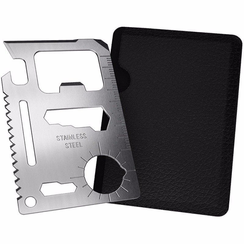 Izvrsten pripomoček, ki se natančno prilega vaši denarnici. S tem priročnim pripomočkom lahko opravite veliko priložnosti. Na kartici je na voljo do 11 funkcij, vključno z odpiračem za steklenice, odpiračem za pločevinke, ravnilom, izvijačem itd.