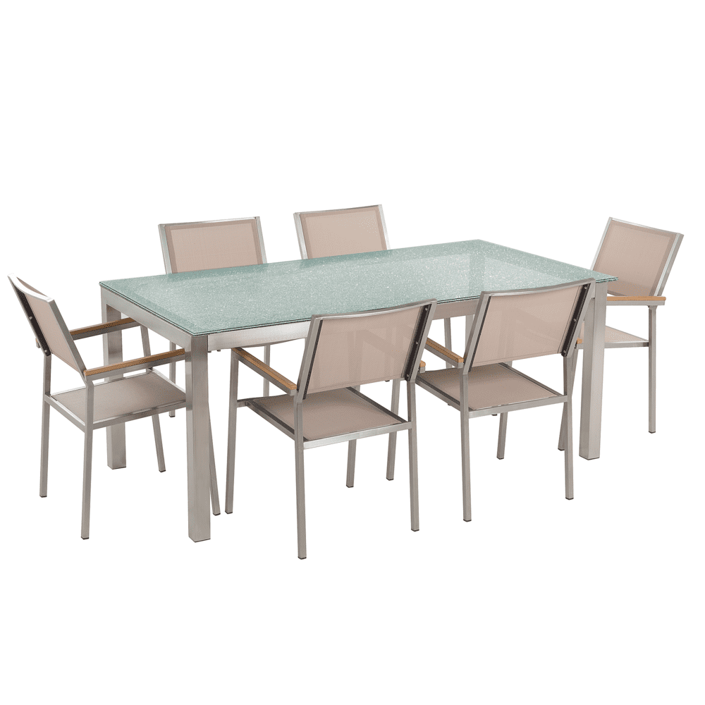 Beliani Garnitura vrtnega pohištva miza z belo stekleno ploščo 180 x 90 cm 6 bež stolov GROSSETO