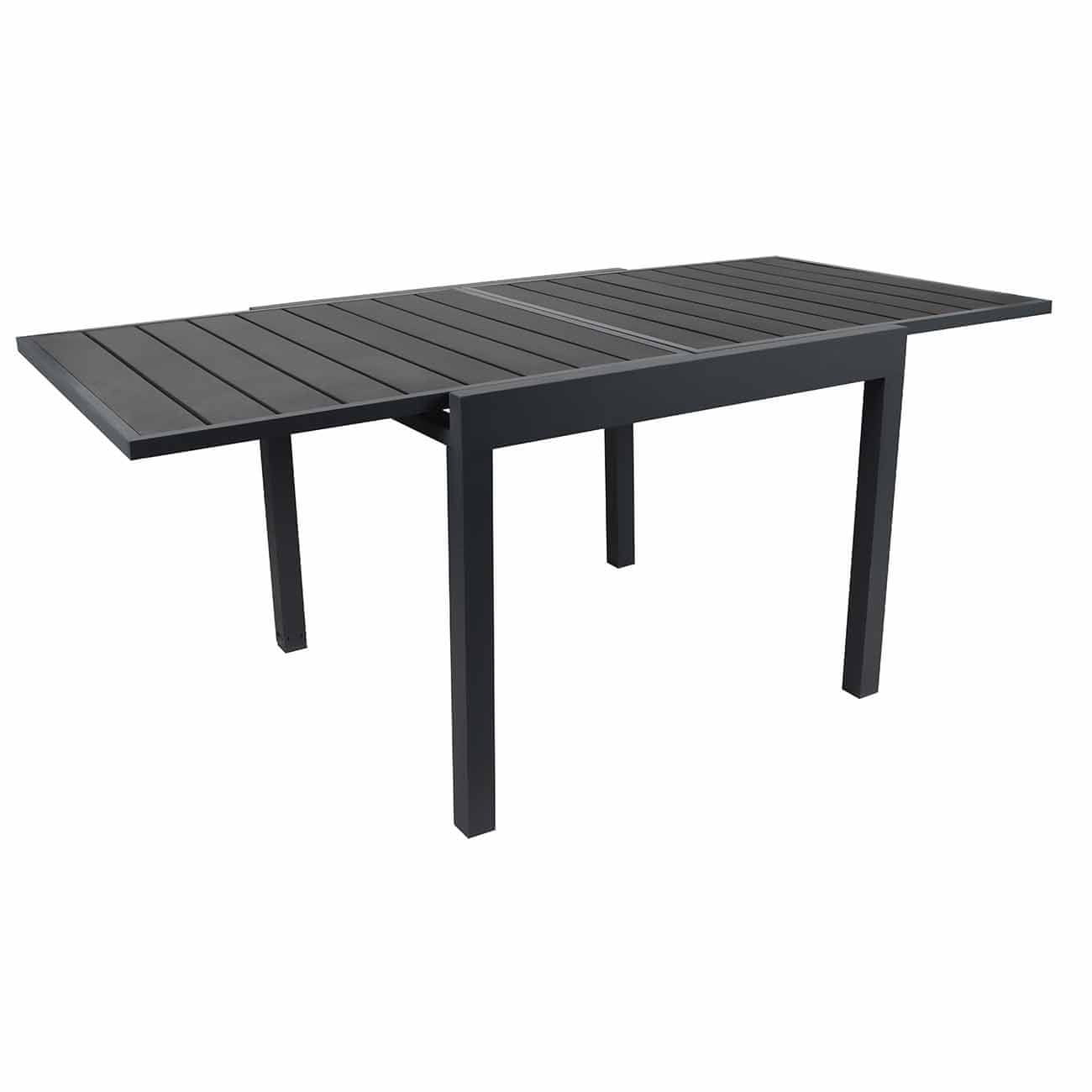 Rasklopivi vrtni stol. Dimenzije: 75×80×80cm. Dimenzije sklopivog stola 80cm, nakon sto se razvuce 160cm. Maksimalna nosivost: 140kg. Celoten opis