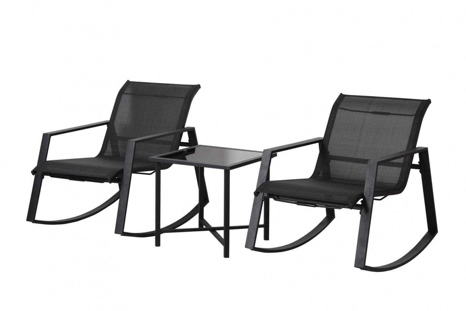 Dimenza Vrtni gugalni set 3-delni (2 gugalna stola + mizica), jeklo, tekstilen, črn