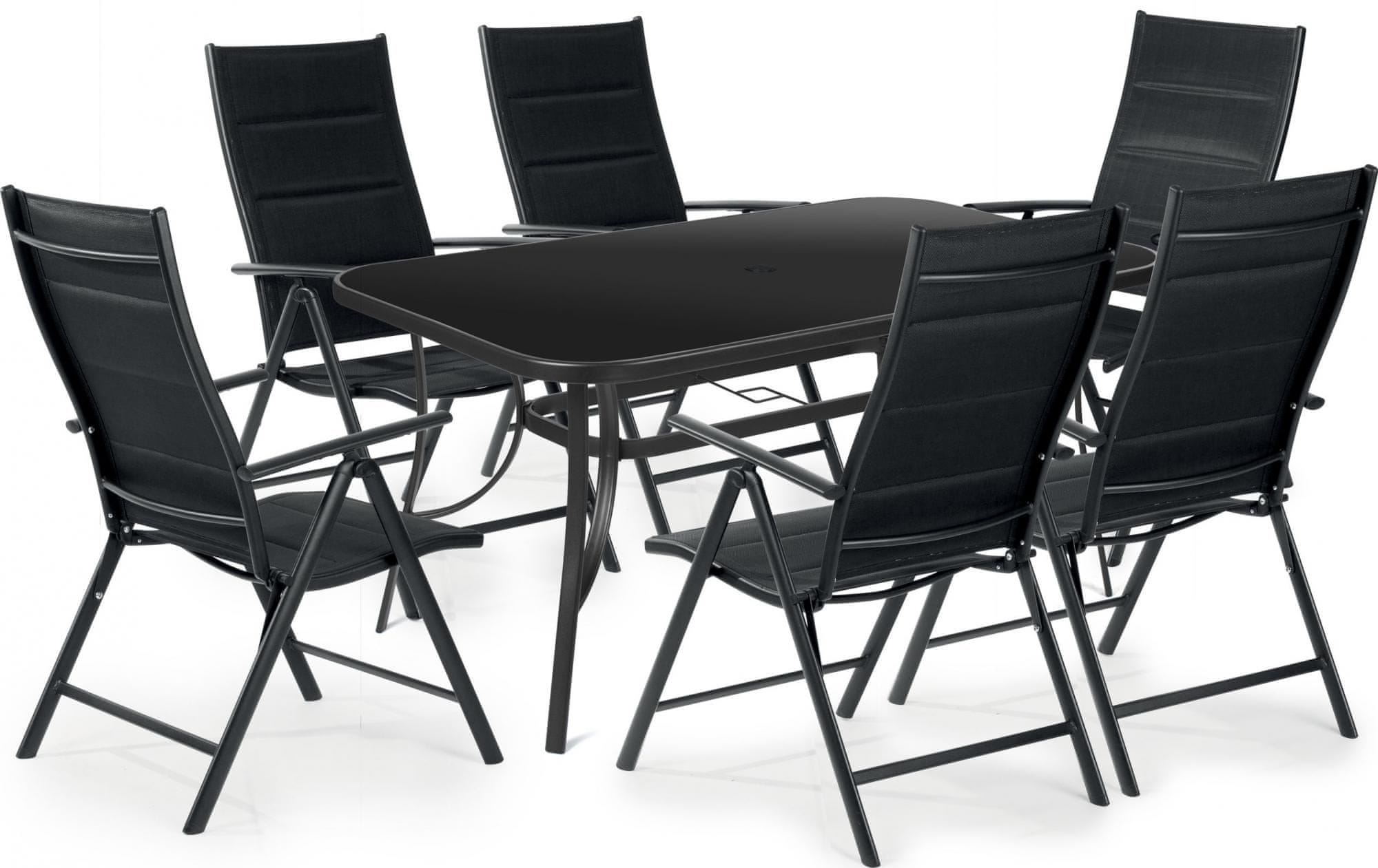 Komplet je primeren za uporabo na vrtu in terasi. Fieldmann Melisa 6 sestoji iz mize z dimenzijami 150 × 96 × 71 cm, ki ima ploščo iz črnega kaljenega stekla in 6 stolov s površino iz trpežne sintetične tkanine. Vključen je sončnik s premerom 3 m v bež barvi. Celoten opis