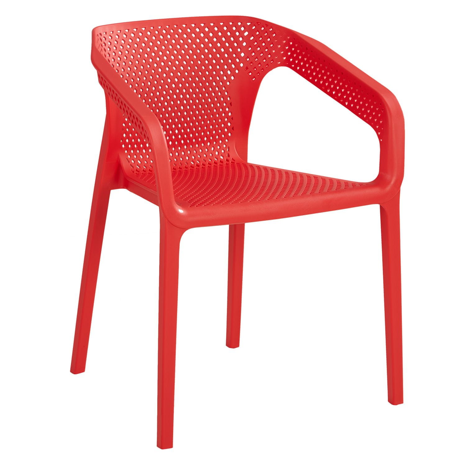 Uživajte v udobju in slogu na vaših zunanjih površinah s tem kompletom štirih modernih vrtnih stolov. Zasnovani za uporabo na balkonih, terasah ali vrtovih, ti stoli izstopajo v živahni rdeči barvi in imajo praktično funkcijo zlaganja za enostavno shranjevanje. Izdelani iz visokokakovostne plastike, so odporni na vremenske vplive, UV-žarke in jih je enostavno čistiti, zato so idealni za celoletno uporabo na prostem.