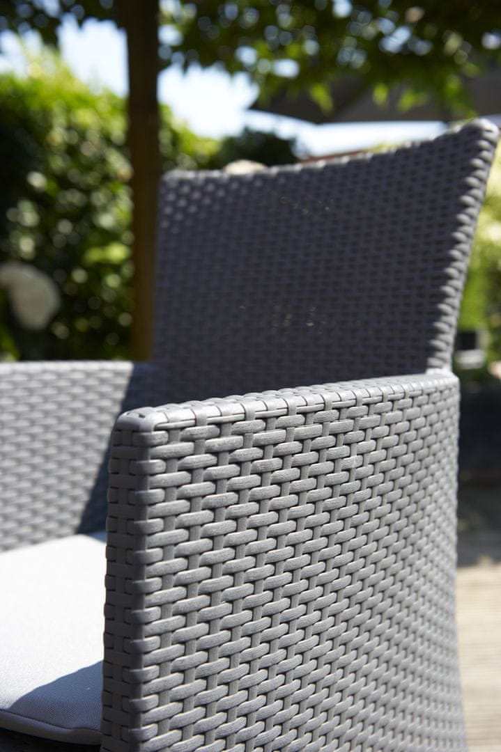 • barva: grafit-klasičen in funkcionalen set, sestavljen iz dveh ergonomsko profiliranih foteljev in priročne mize-izdelek iz plastike (polipropilen), ki kljub velikosti zagotavlja visoko udobje-izjemno preprost sistem zlaganja in razstavljanja-enostavno čiščenje