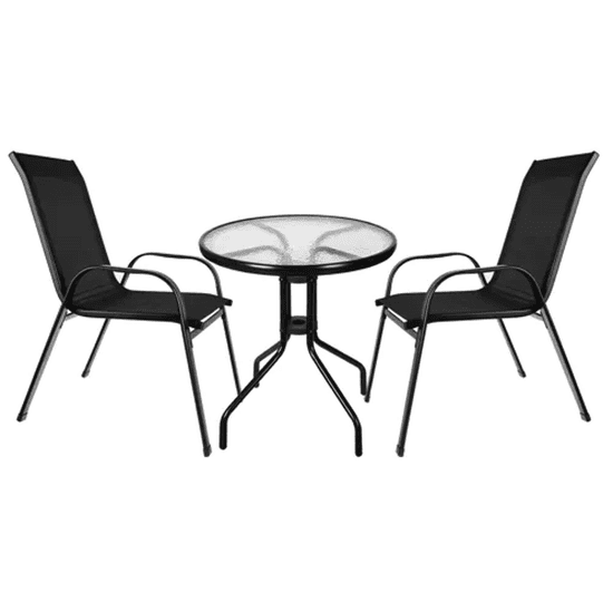 Sloganski balkonski set TAVERNO je idealna izbira za udobno sedenje na balkonu, terasi ali v manjšem vrtu. Komplet vsebuje okroglo mizo s stekleno ploščo in dva udobna stola s kovinskim ogrodjem in zračnim tekstilnim pletenjem. Celoten opis