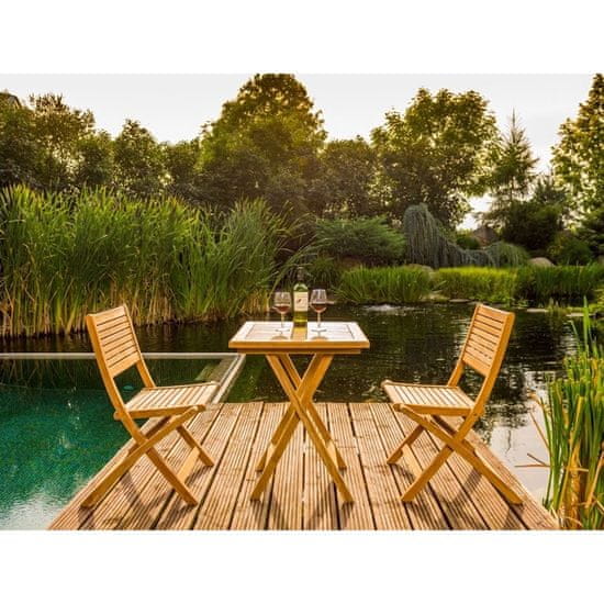 Zložljiv balkonski stol Ambra je izdelan iz tikovega lesa. Idealno za balkone ali manjše terase. Razkošen videz in dolga življenjska doba tikovine v kombinaciji z lahkim sodobnim dizajnom ustvarjajo prijeten vtis robustnega vrtnega pohištva, čeprav je stol manjših dimenzij in ga je mogoče zlahka zložiti, zato zaseda miniaturni prostor.