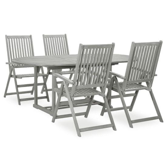 Vidaxl 5-delni vrtni jedilni komplet (150-200) x 100 cm masiven akacijev les sive barve