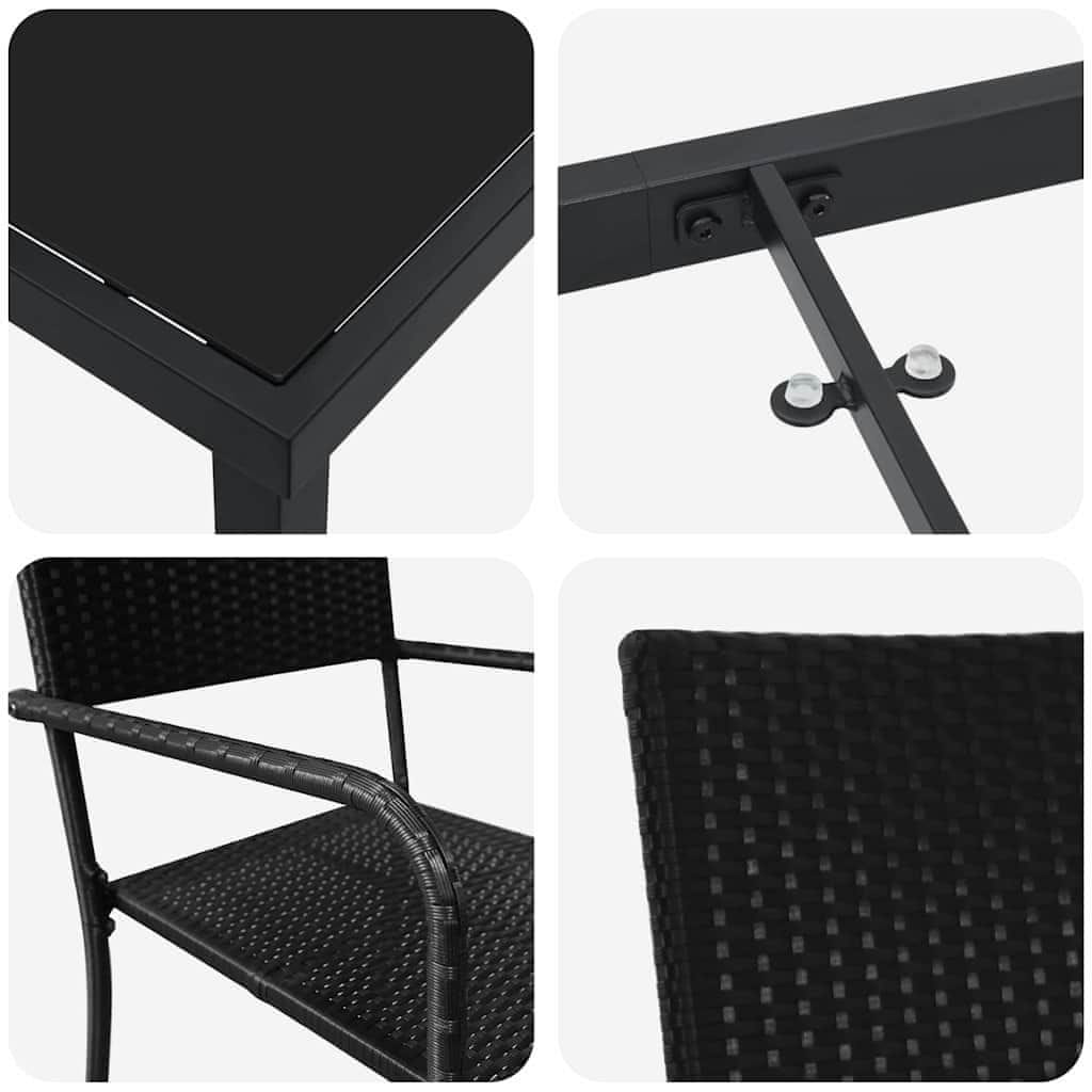 Vidaxl Komplet za jedilnico v vrtu z blazino 3 pcs Črna poli ratan