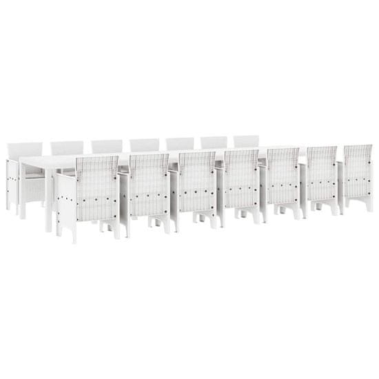 Vidaxl Vrtna jedilna garnitura s blazinami z blazino 15 pcs Bela PP