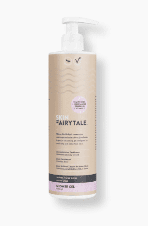 SkinFairytale Tuš gel je pripravljen za tuširanje občutljive kože. Tuširanje je za bolnike z atopijskim dermatitisom dvorezni meč, saj lahko sredstva za čiščenje kože vsebujejo dražilna sredstva, alergene. Čistilna sredstva lahko odstranijo lipide s povrhnjice in tako povečajo transepidermalno izgubo vode ter ogrozijo barierno funkcijo kože. Razvoj vlažilnih in nežnih čistilnih sredstev za tuširanje je zelo pomemben korak za paciente z atopijskim dermatitisom. Namen razvoja teh izdelkov je predvsem, da omogočajo učinkovito čiščenje, vendar pri tem ne poškodujejo ali razdražijo kože.