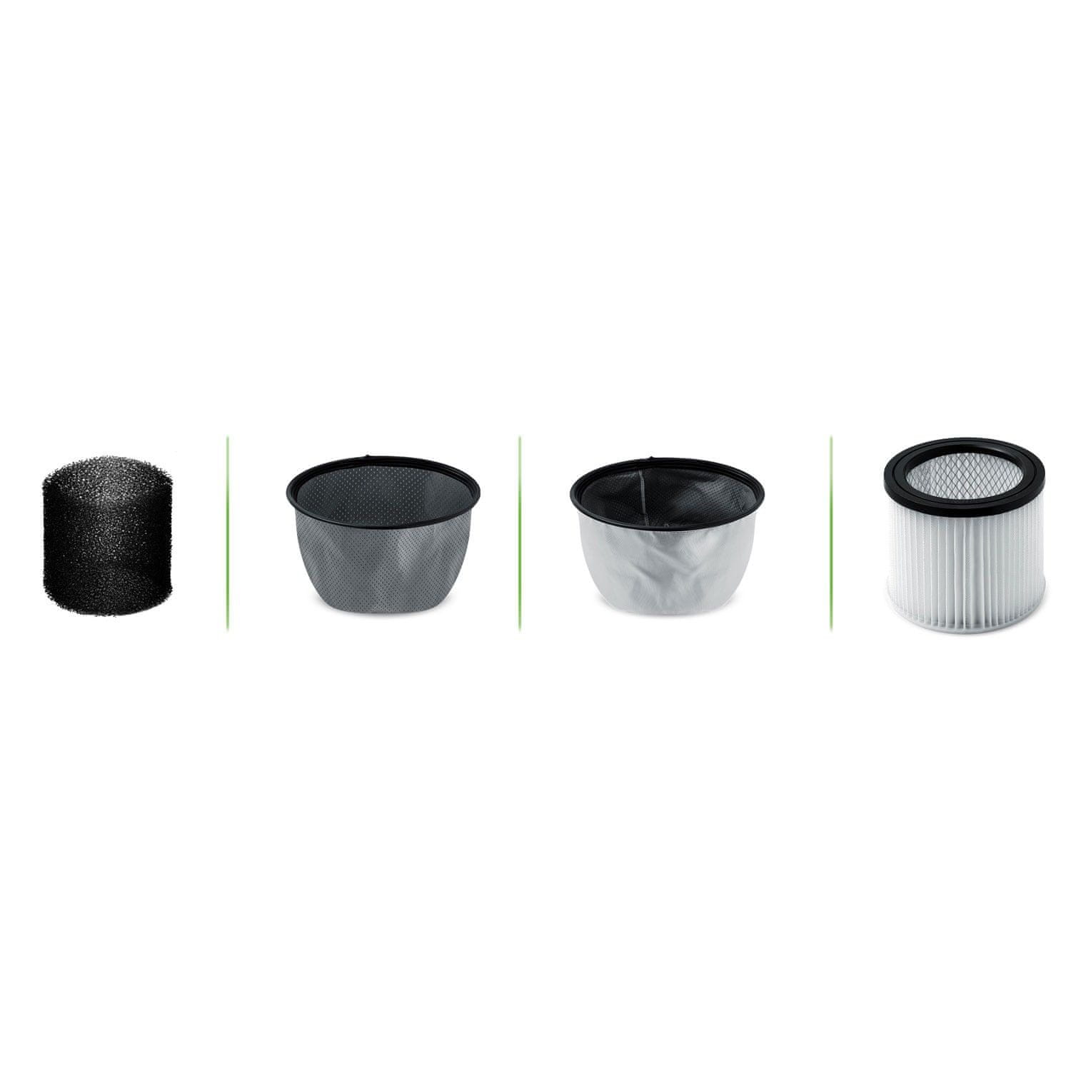 Komplet vsebuje štiri filtre, ki vam pomagajo ohranjati čistost zraka. Vsak filter je prilagojen za delo v različnih pogojih, vendar lahko za izboljšanje učinka filtracije uporabite trojni sistem (goba, vata in HEPA filter), kar vam daje 100-odstotno gotovost glede kakovosti zraka, ki ga naprava izsesava.