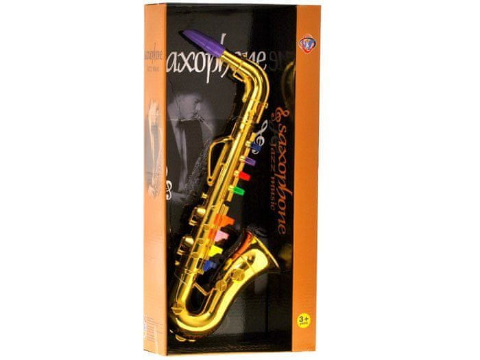 Saksofon je izdelan iz plastike z veliko pozornostjo do podrobnosti. Igrača je pakirana v lepo kartonasto škatlo.