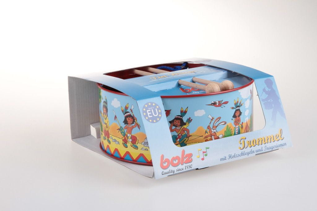Buben z indijanskim motivom, premer 20 cm, višina 9 cm. Primeren za otroke od 3. leta starosti dalje.