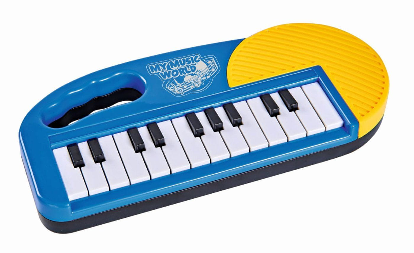 Modra klaviatura za male glasbenike, 23 tipk. Ročaj za enostavno prenašanje. Velikost 25 cm.