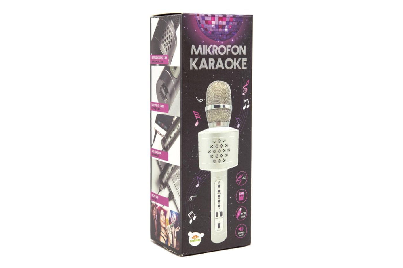 Teddies Mikrofon za karaoke Bluetooth s srebrno baterijo in kablom USB
