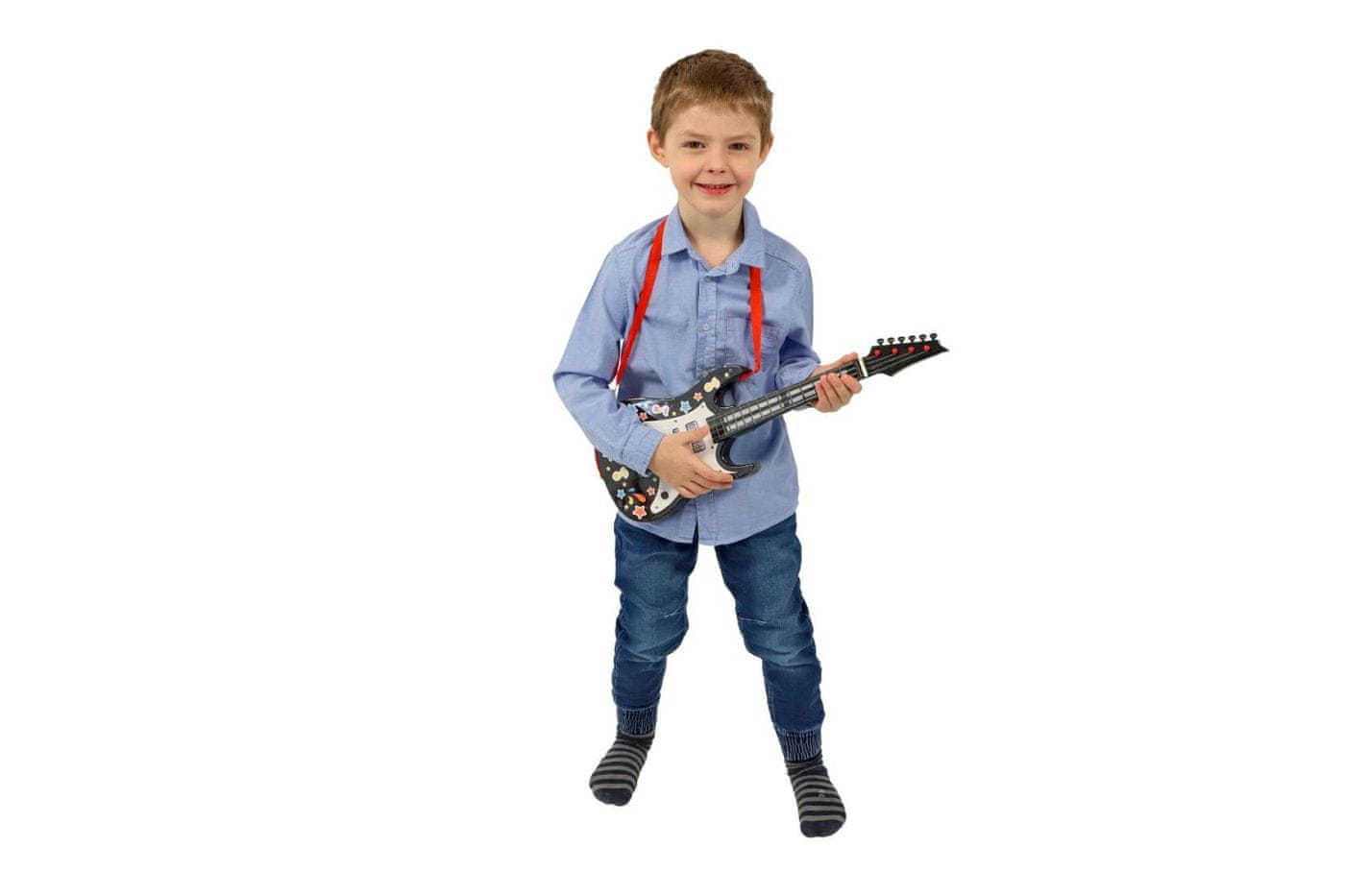 Postanite zvezda na odru! Ta barvita otroška kitara z zvočnimi in svetlobnimi učinki je odlična izbira za mlade glasbenike in ljubitelje glasbe. Zaradi priročnega naramnega pasu lahko otroci udobno igrajo, medtem ko kitara sveti in oddaja vesele tone. Odlična igrača za razvijanje glasbene občutljivosti, ritma in poguma za nastopanje. Mali koncert se lahko začne – kjerkoli in kadarkoli. Dimenzije paketa 22 × 63,5 × 5 cm Primerno za otroke od 3. leta dalje
