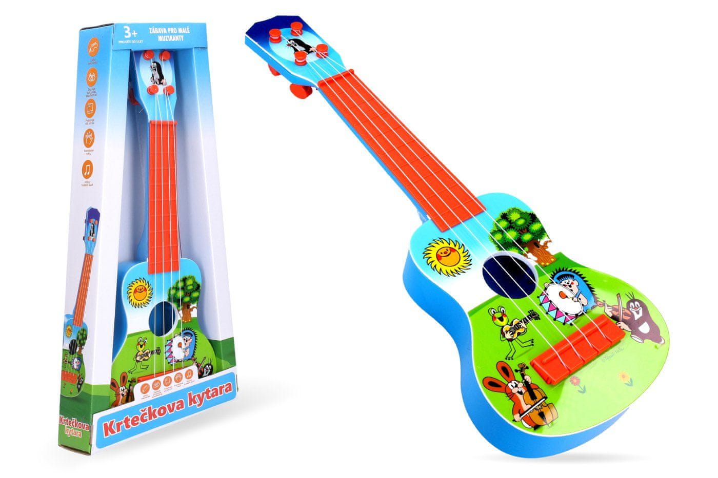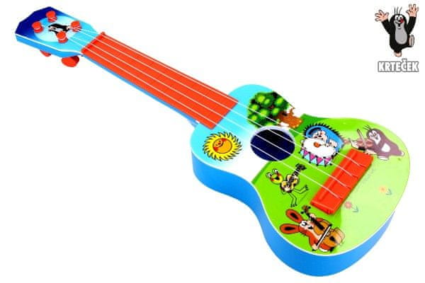 Zabava za vse male glasbenike in ljubitelje Krtka! Kul kitara s 4 strunami in motivom Krtka in njegovih prijateljev. Igrajte, kar se da, in si polepšajte dan! Velikost kitare: 40 cm 19 × 41 × 5,5 cm Primerna za otroke od 3. leta starosti