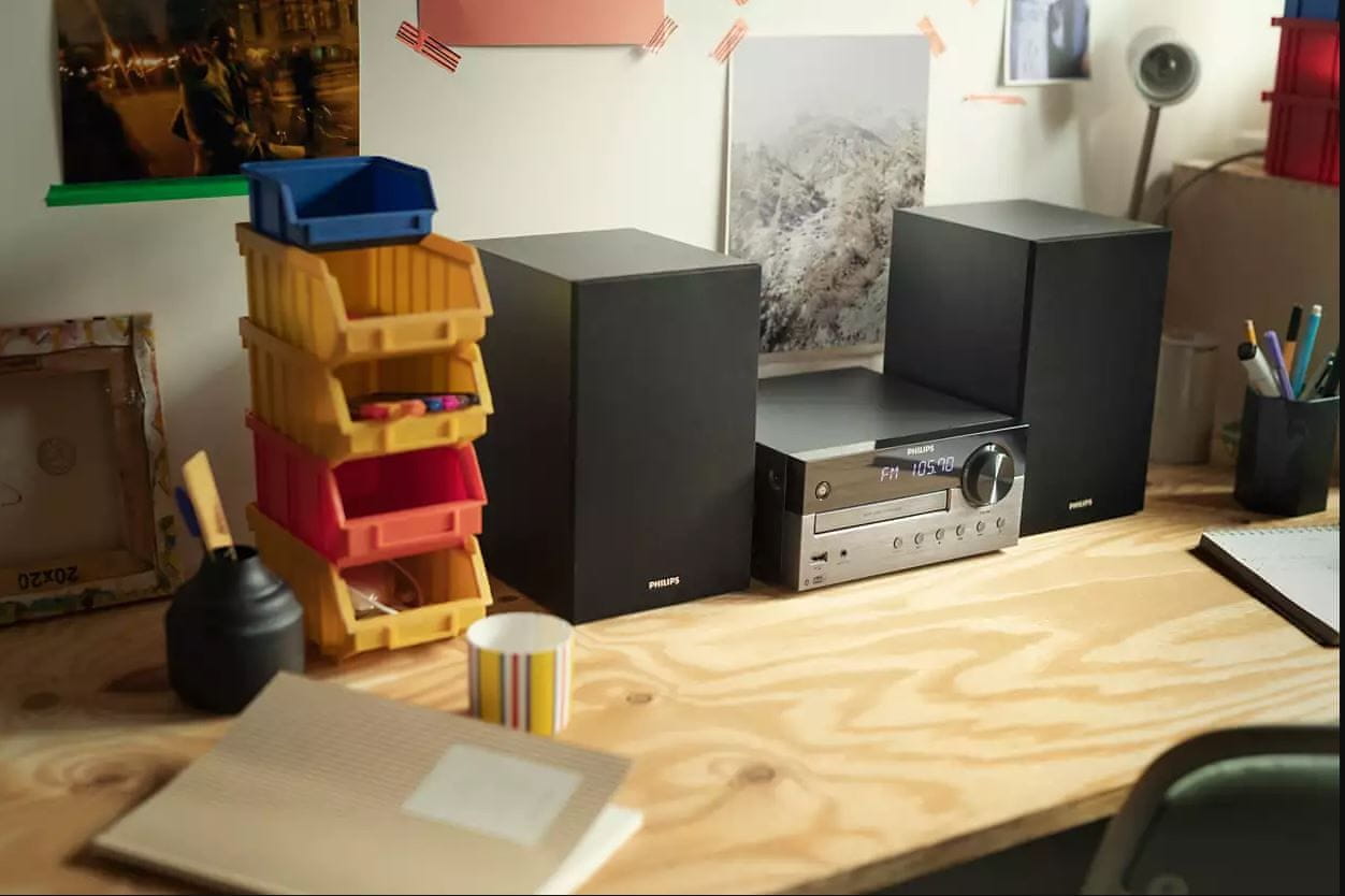 eleganten mikro sistem philips tam4505 60w moč bluetooth aux In usb predvajanje usb polnjenje dab fm tuner cd pogon mp3cd dizajn hifi sistemi basrefleks zvočniki