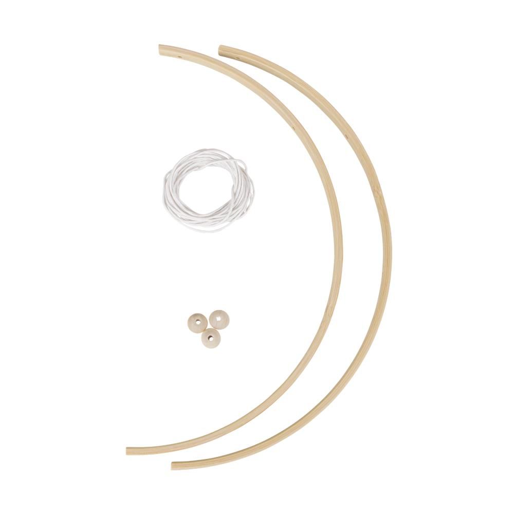 Vsebina: 2 bambusova loka (osnova) 25 cm, 3 lesene kroglice o 1 cm, 3 m vrvice, bela.