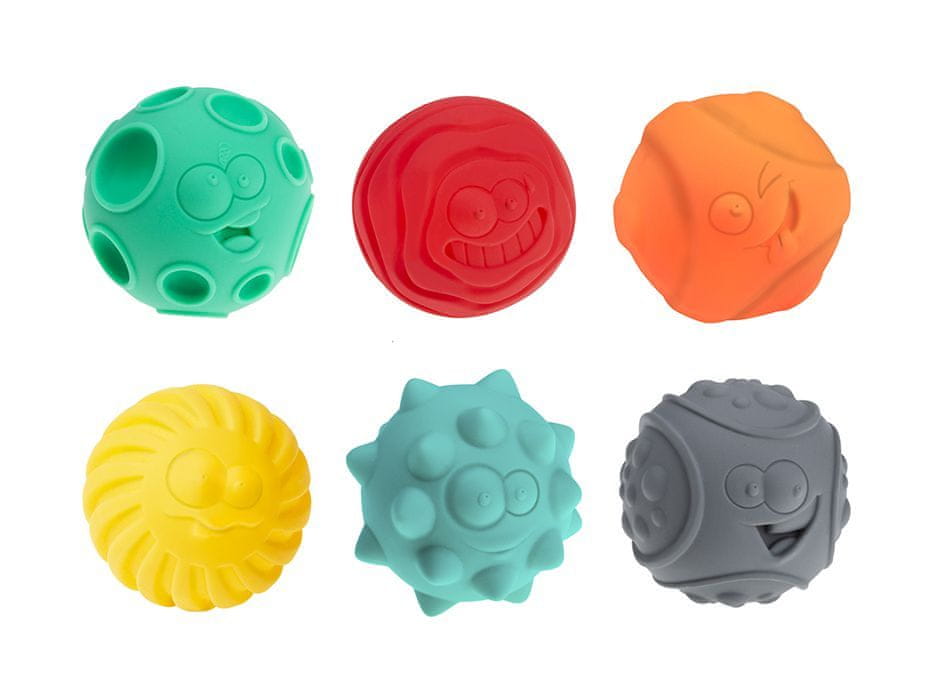 Vsaka žogica je edinstvena, z drugačno teksturo, barvo, obliko in obrazom, kar zagotavlja različne dražljaje za otrokove čute (vid, sluh, dotik) – zagotavlja večsenzorno stimulacijo