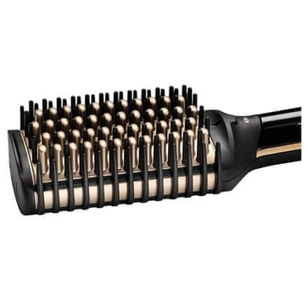 - zahvaljujoč široki ogrevani površini v kombinaciji s keramičnimi ščetinami, plastičnimi ščetinami in stranskimi glavniki dobro drsi po laseh, da so videti naravno ravni, vsak dan, tudi na kodrastih ali valovitih laseh