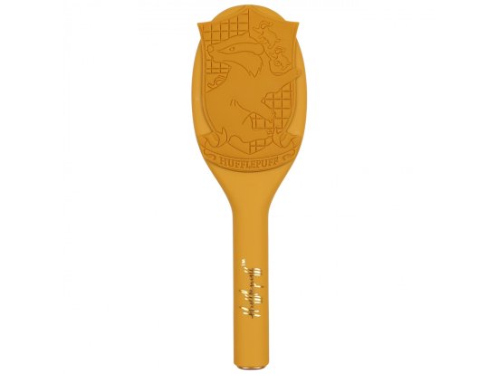 Gorčično rumena krtača za lase, na zadnji strani z gumijasto aplikacijo, ki prikazuje grb enega od hiš na Bradavičarki – Hufflepuff.Ščetine krtače so elastične in imajo na koncih majhne kroglice, ki masirajo lasišče ter spodbujajo prekrvavitev.Razširjena blazina izboljša učinkovitost razčesavanja ta Celoten opis