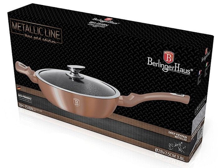 Berlingerhaus Globoka ponev z marmornato površino in pokrovom 28 cm Rosegold Metallic Line BH-1518