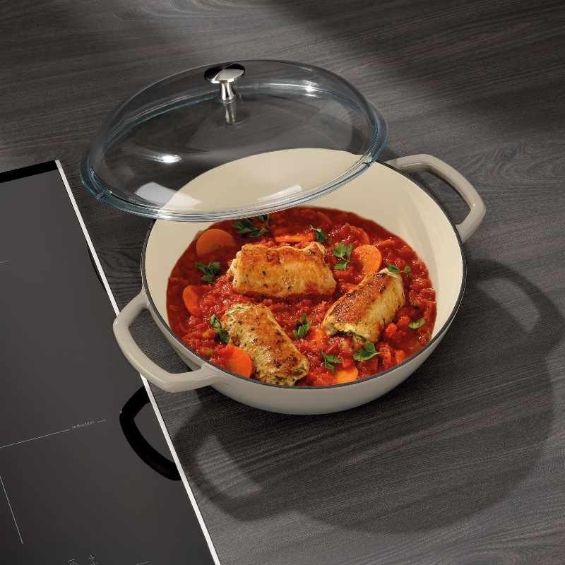 Emajlirana litina svetlo siva/bežna 28cm , 16cm v, 3,8L Celoten opis