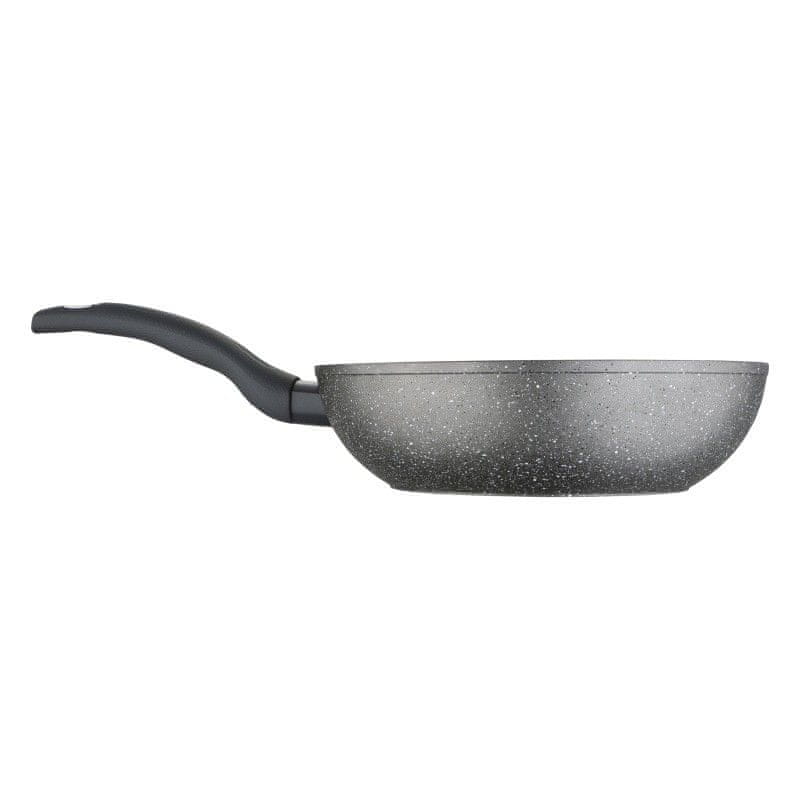 - Vok 28×7,2 cm. -Zmogljivost: 3,75 l. -Material: kovani aluminij. Vok z neprijemljivo površino: ima marmorirano neprijemljivo površino. -Primeren za vse vrste štedilnikov, vključno z indukcijskimi. – Ergonomski ročaj z mehko površino;