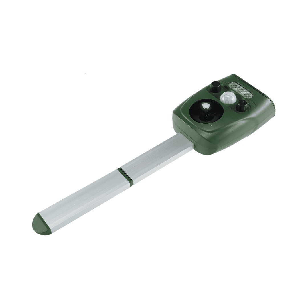Živalim prijazen način, da UČINKOVITO zaščitite svoj vrt in lastnino zahvaljujoč solarnemu ultrazvočnemu odganjalcu na delovanje brez baterij! Naprava se samodejno vklopi ob zaznavi gibanja in pošilja zvoke v ultrazvočnem frekvenčnem območju, ko žival vstopi v območje detektorja gibanja. Poleg tega bliskavica draži neželene vsiljivce.