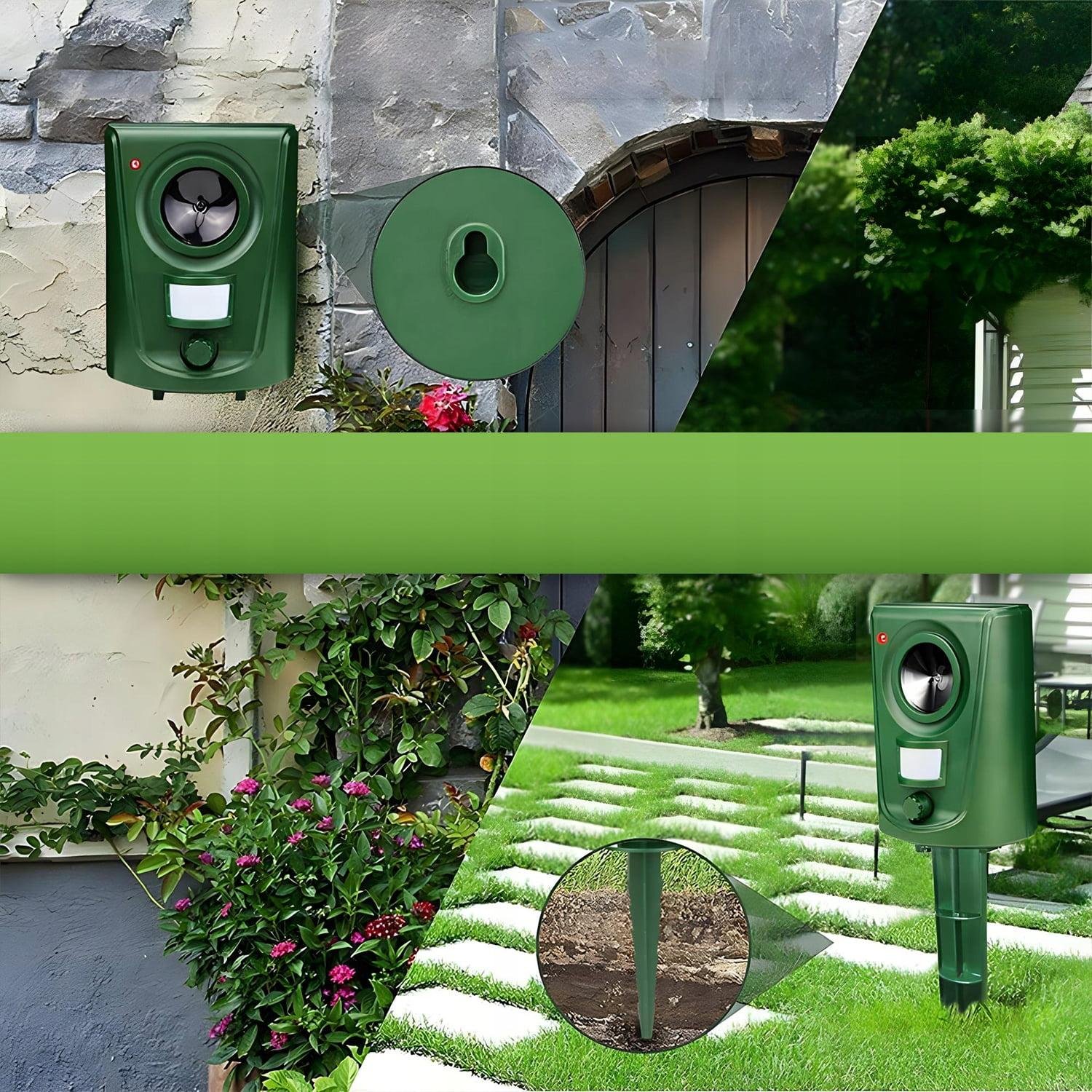 Naš odganjalec uporablja sodobno ultrazvočno tehnologijo, ki učinkovito odganja živali v okolici. Neznosni zvoki se prenašajo na frekvencah, ki jih lahko slišijo le živali, zato naprava nikakor ne draži ljudi v okolici. Napravo lahko zabijete v zemljo ali obesite na steno ali drevo. Popoln za vrt, parcelo, njive, sadovnjake in mnoge druge.