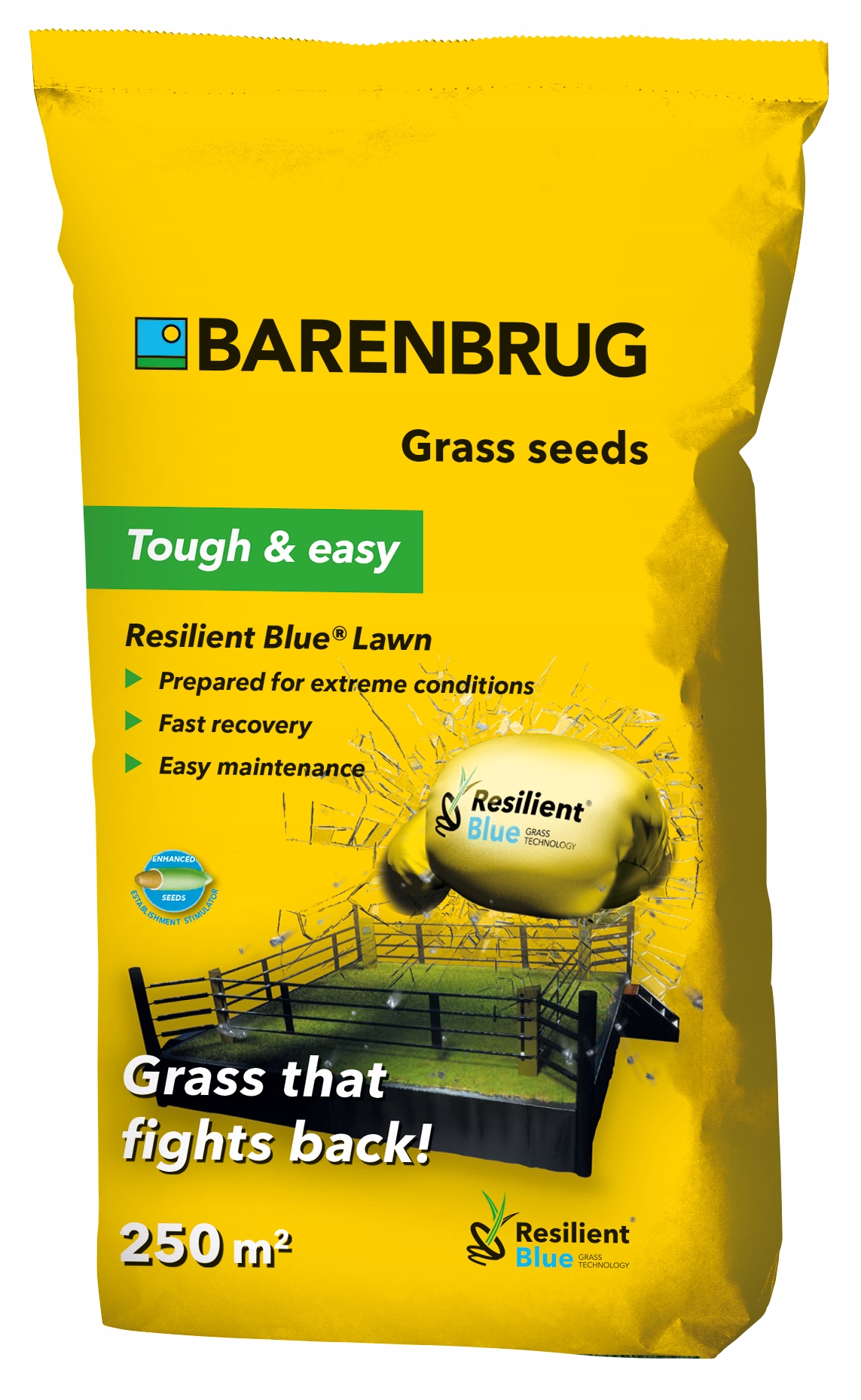 V pakiranjih po 15 kg so semena trave Resilient Blue ojačana s premazom Yellow Jacket Water Manager, ki semenom zagotavlja optimalno vlago med kalitvijo