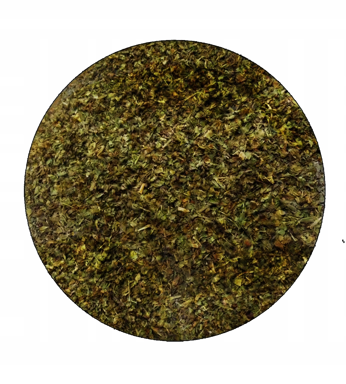 Posušena bazilika. Za pečenje mesa, jedi na žaru, juhe, solate, omake, marinade, jedi z morskimi sadeži, pečeno zelenjavo, jedi s piščancem, vegetarijanske in veganske jedi.