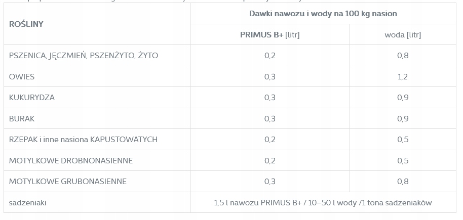 PRIMUS B+ je namenjen uporabi med obdelavo semen. Bistvo postopka priprave semen za setev je uporaba gnojil, ki rastline ščitijo pred patogeni, ki se pojavljajo v tleh ali se prenašajo s semeni, ter pred škodljivci, ki napadajo rastline. Podjetja, ki proizvajajo in pripravljajo semenski material (ali kmetje sami), za izboljšanje tretiranih semen dodatno uporabljajo gnojilo za semena PRIMUS™ B+.