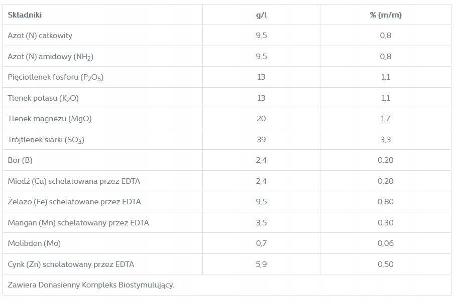 SESTAVA: N, P2O5, K2O, MgO, SO3, B, Cu, Fe, Mn, Mo, Zn