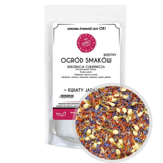 Rože za torte iz Modrega vrta okusov – posušene užitne rože. Posušene užitne rože so čudovita in elegantna dekoracija za torte. Te rože so na voljo v različnih barvah in sortah, kar vam omogoča, da ustvarite edinstveno dekoracijo, prilagojeno individualnemu okusu in potrebam. Posušene užitne rože so zaradi svoje vzdržljivosti in lepote idealna izbira za dekoracijo tort. V primerjavi s svežimi cvetovi posušene rože ne ovenijo ali zbledijo, zato jih lahko dolgo časa uporabljate kot okraske. Poleg tega posušene rože ne potrebujejo vode, kar pomeni, da vam ni treba skrbeti, da bi vlaga pokvarila torto. Parametri: Država porekla: Poljska Sestavine: žafran (žafranika), modra plavica, jasminovi popki Embalaža: vrečka DOYPACK z zadrgo Uporaba: torte, praline, sladice, krofi, čokolade itd. Posušene užitne rože lahko položite na torto ali jih vključite v celotno torto, kar ustvari lepo in harmonično kompozicijo. Užitne rože lahko uporabite tudi za okrasitev mafinov, piškotov in drugih sladkarij, s čimer ustvarite edinstvene in elegantne pekovske izdelke. Pri izbiri posušenih užitnih cvetov za dekoracijo tort je treba vedeti, da nekatere rože morda niso varne za uživanje. Zato se pred uporabo suhega užitnega cvetja za dekoracijo torte prepričajte, da je izbrano cvetje varno za uživanje in da pri gostih ne bo povzročilo alergijskih reakcij. Skratka, suho užitno cvetje je popolna dekoracija za torte, mafine, piškote in druge sladice. So trpežne, lepe in dodajo eleganco vsaki pekovski dobroti. Ponujamo tudi druge mešanice suhega cvetja. Vrečka Doypack: Laserska perforacija: Lasersko perforirana linija skupaj z Easy Open omogoča enostavno odpiranje v ravni črti. Zadrga: Odpiranje z vrvico omogoča večkratno odpiranje in zapiranje vrečke. Funkcionalno, zlasti za izdelke v razsutem stanju. Enostavno odpiranje: Zareza za enostavno odpiranje.