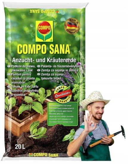 Zemlja za zdravo rast – setev, pikanje in zelišča, 20 l. Iščete visokokakovosten substrat za setev, pikanje in rast mladih rastlin in zelišča? Ta specialna zemlja za setev, pikanje in zelišča je specializirana mešanica, ki rastlinam zagotavlja odlične pogoje za kalitev in zdravo rast. Njena nežna struktura omogoča optimalno ukoreninjenje sadik, njene naravne sestavine pa podpirajo razvoj talnih mikroorganizmov. Prednosti: ✅ 100 % naravne sestavine – brez kemičnih dodatkov, zaradi česar je varna za užitne rastline. ✅ Rahla, fina struktura – zagotavlja odlično kroženje zraka in optimalne pogoje za razvoj korenin. ✅ Začetni odmerek organskega gnojila – zagotavlja oskrbo z esencialnimi hranili v prvih 2–5 tednih rasti. ✅ Visoka vsebnost humusa – podpira rodovitnost tal in zagotavlja zdrav razvoj rastlin. ✅ Dodatek komposta – izboljša fizikalne lastnosti tal, poveča njihovo vodno kapaciteto in količino organskih snovi. ✅ Morski gvano – naravni vir hranil, ki podpirajo zdravo rast rastlin. ✅ Naravni kremenčev pesek – zagotavlja boljšo stabilizacijo sadik in optimalno porazdelitev vode v tleh. ✅ Ekološki izvor – surovine ustrezajo standardom EU, kar omogoča uporabo substrata v ekološkem kmetijstvu. ✅ Strog nadzor kakovosti – izdelek ustreza strogim standardom COMPO in neodvisnih raziskovalnih inštitutov. Parametri: ✅ Prostornina: 20 litrov ✅ pH: 5,0 – 6,5 ✅ Sestavine: šota, perlit, Agrosil, apno ✅ Uporaba: za setev semen, gojenje mladih sadik in presaditev ✅ Embalaža: 20 l vreča ✅ Blagovna znamka: COMPO Previdnostni ukrepi: ✅ Pri presajanju rastlin nosite zaščitne rokavice, da preprečite kontaminacijo kože. ✅ Substrat shranjujte na suhem in senčnem mestu, da ohranite njegove lastnosti. ✅ Izogibajte se vdihavanju prahu – če je prašen, nosite masko za obraz. ✅ Hranite izven dosega otrok in hišnih ljubljenčkov.