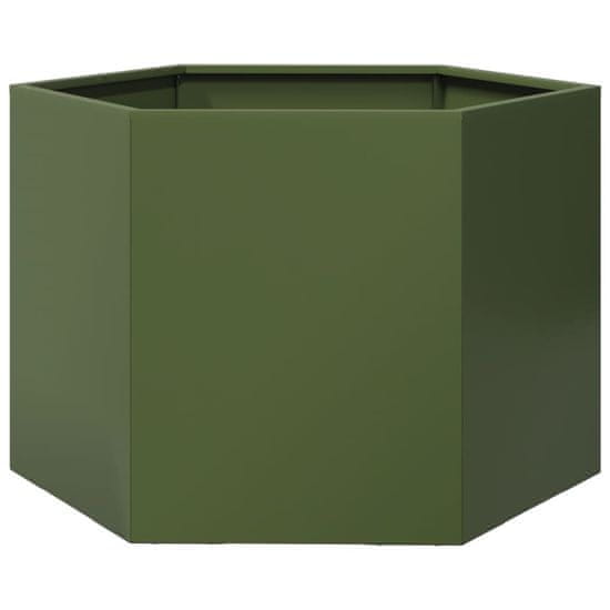 Vidaxl Vrtno korito olivno zelena šestkotnik 69x60x45 cm jeklo