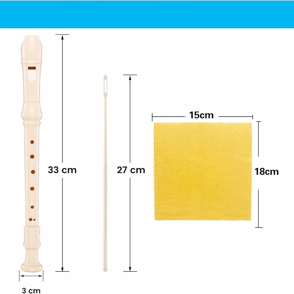 Lahka in trpežna sopranska flavta iz visokokakovostne ABS plastike, idealna za otroke in začetnike. Ima 8 lukenj in nemško prstoklado , zaradi česar se je enostavno naučiti igrati. Komplet vsebuje čistilno orodje in vrečko za shranjevanje .