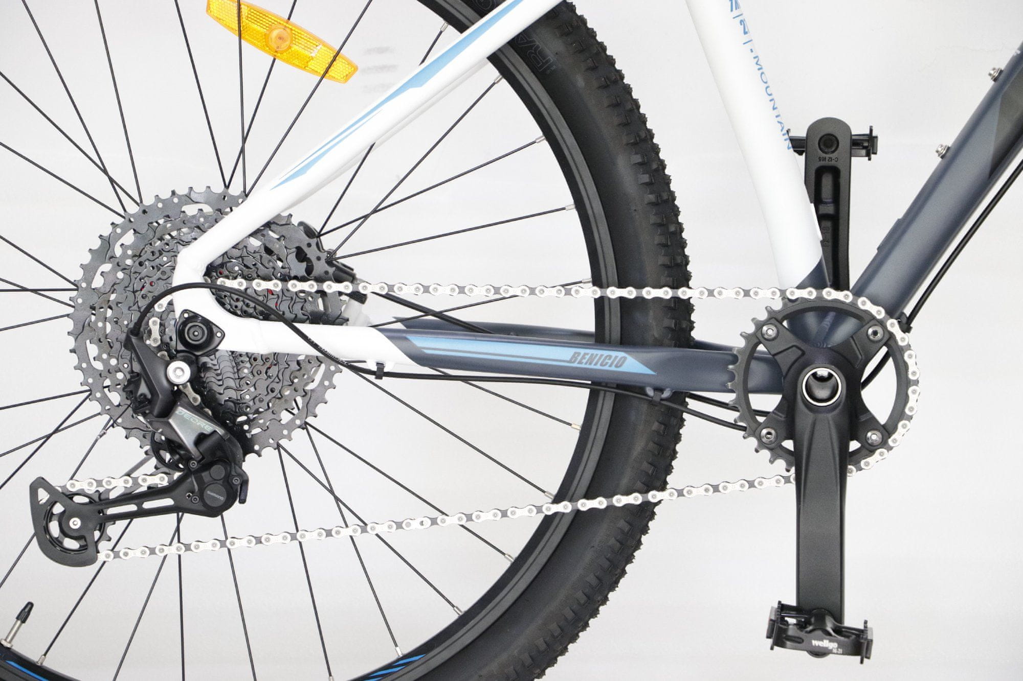 Zahvaljujoč prestavljanju Shimano DEORE KSLM5130 in zavoram Shimano MT200 dobite gladke prehode med hitrostmi in varen nadzor zaviranja tudi v zahtevnih pogojih.
