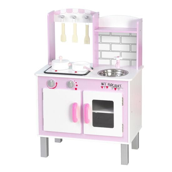 HOMCOM HOMCOM Kuhinjska igrača za otroke 3+ let s 5 vključenimi dodatki, igra z realističnimi zvoki, omarica, 55x30x80 cm, roza