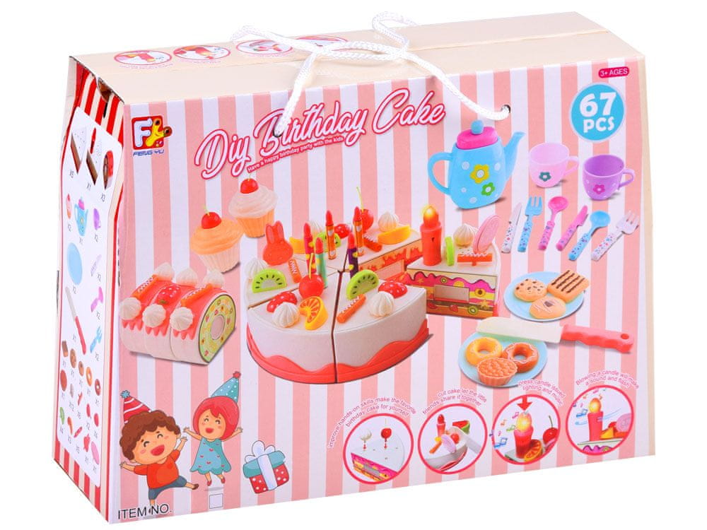 Predstavljamo komplet, s katerim bo vsaka mala gostiteljica lahko organizirala nepozabno zabavo. Komplet vključuje torto, ki jo lahko okrasite na različne načine, nato pa jo razrežete in postrežete gostom. Komplet vključuje tudi druge prigrizke, npr. kekse, piškote itd.