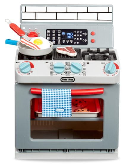 Moja prva pečica od Little Tikes je interaktivna igračka, ki je oblikovana, tako da izgleda kot prava naprava. Pečica je seveda opremljena tudi s štedilnikom, na katerem lahko otroci „ocvrejo“ jajca ali okusen zrezek. Otroci si lahko predstavljajo, kako kuhajo kosilo kot njihovi starši. Celoten opis