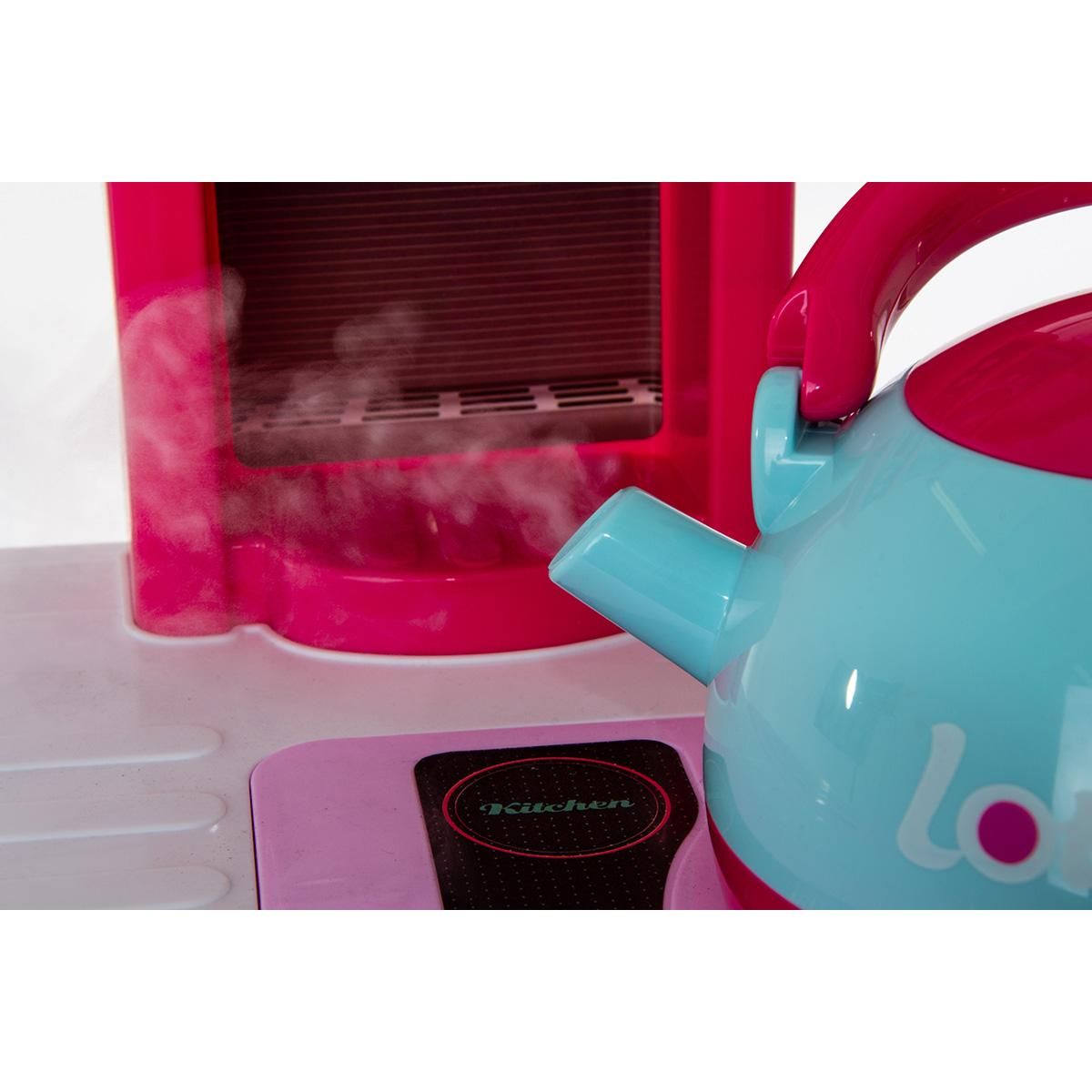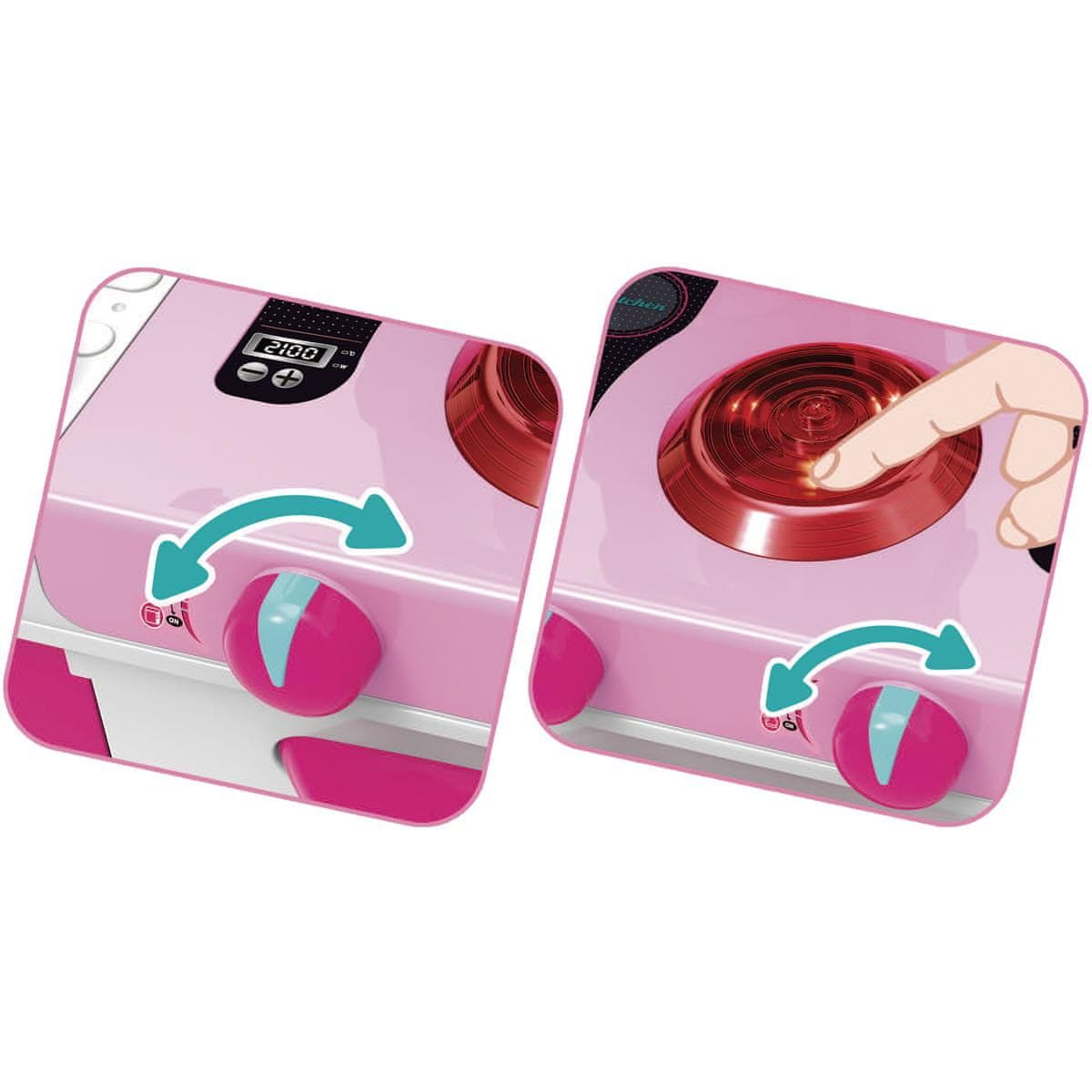 Ta čudovita kuhalna plošča ima dodatno prednost zvoka in vida. Ko obrnete levi gumb, boste slišali zvok vklopljene pečice, ko obrnete desni gumb in na gorilnik postavite čajnik, pa se bo slišal zvok vrele vode, vendar to še ni vse! Poleg tega bo iz kotlička prihajala para! Igra s tem kuhalnikom ne bo le najboljši izkoristek prostega časa vašega otroka, temveč tudi učna izkušnja.