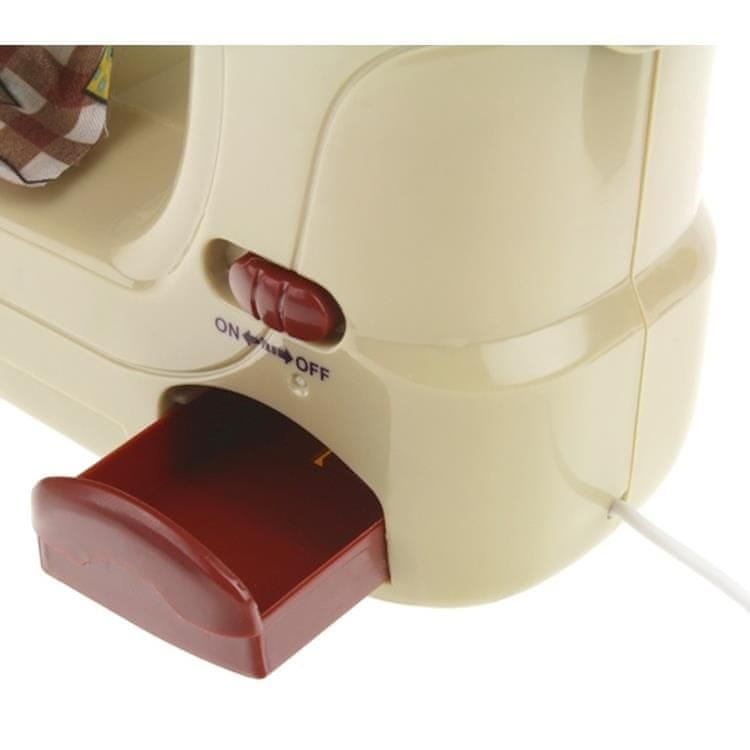 Miška, ki je priložena kompletu, nadomešča nožni pedal. Po zagonu začne stroj posnemati delovanje prave naprave, spremlja pa ga zvok šivanja. Stroj ima majhen predal, kamor lahko odložite pripomočke, potrebne za šivanje oblačil, na primer sukanec ali gumbe. Igla strojčka je prekrita z zaščitno plastiko, zaradi česar je igrača popolnoma varna. Po premiku gumba za vklop/izklop lučka med igro osvetli iglo.