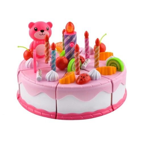 ROJSTNODNEVNA TORTA – KOMPLET 80 ELEMENTOV USTVARJALNA ZABAVA – čudovito roza rojstnodnevno torto lahko okrasite po lastni viziji in zamisli. V kompletu je veliko dodatkov kot so sadje, meringe in Celoten opis