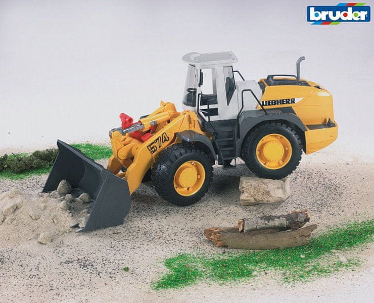Bruder Prednji nakladalnik LIEBHERR L574 Prednji nakladalnik LIEBHERR L574 je zelo dobro izdelan model! Sprednja os se skupaj z nakladalcem obrača na obe strani, sprednji nakladalec se premika z enim od vzvodov, drugi vzvod razrešuje nakladalec, zadnji kolesi imata neodvisno vzmetenje, pokrov motorja je na tečajih, zastekljena kabina s prozorno gladko plastiko, profilirane gume, zelo kakovostna plastika. Presenečeni boste nad funkcionalnostjo tega nakladalnika in podobnostjo pravemu čelnemu nakladalniku!Čelni nakladalnik je bil izdelan v merilu 1:16 po pravem čelnem nakladalniku kot zvesta plastična replika. Gre za zelo kakovostno izdelavo nemškega podjetja BRUDER do najmanjše podrobnosti, izdelano v Nemčiji iz visokokakovostne plastike ABS, prožne plastike s sijajno površino. Glavne značilnosti: podroben model s številnimi funkcijamiprednja os se skupaj z nakladalcem vrti na obe straniprednji nakladalec se premika z enim od vzvodov, drugi vzvod prazni nakladalecodprt pokrov motorjasteklena kabinaprofilne mehke pnevmatikeizdelano v Nemčiji