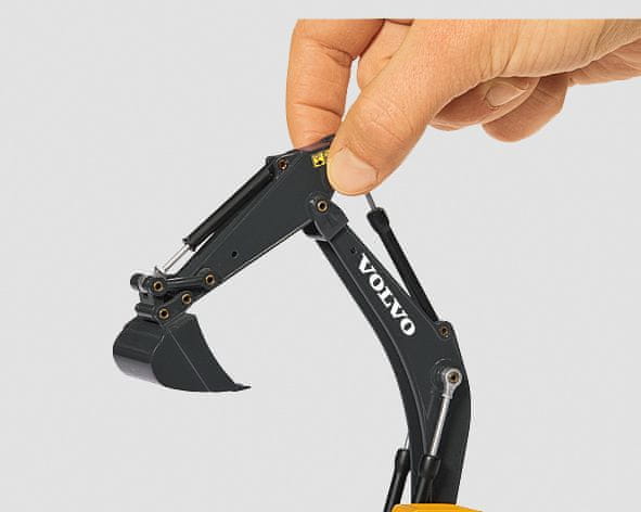 Hidravlični bager Volvo EC 290 je standardni stroj za mala in srednje velika gradbišča. Model v merilu 1:50 je večinoma izdelan iz kovine. Verige so izdelane iz gumiranega materiala in so premične. Strojnico s kabino in roko bagra je mogoče obrniti za 360°. Ročica in lopata bagra sta zasnovani tako, da ju je mogoče premikati s pomočjo vrtljivih sklepov. Merilo: 1:50. Dimenzije bagra: 185 × 62 × 91 mm. Dimenzije paketa: 25,5 × 7,5 × 11,5 cm. Starost: 3+